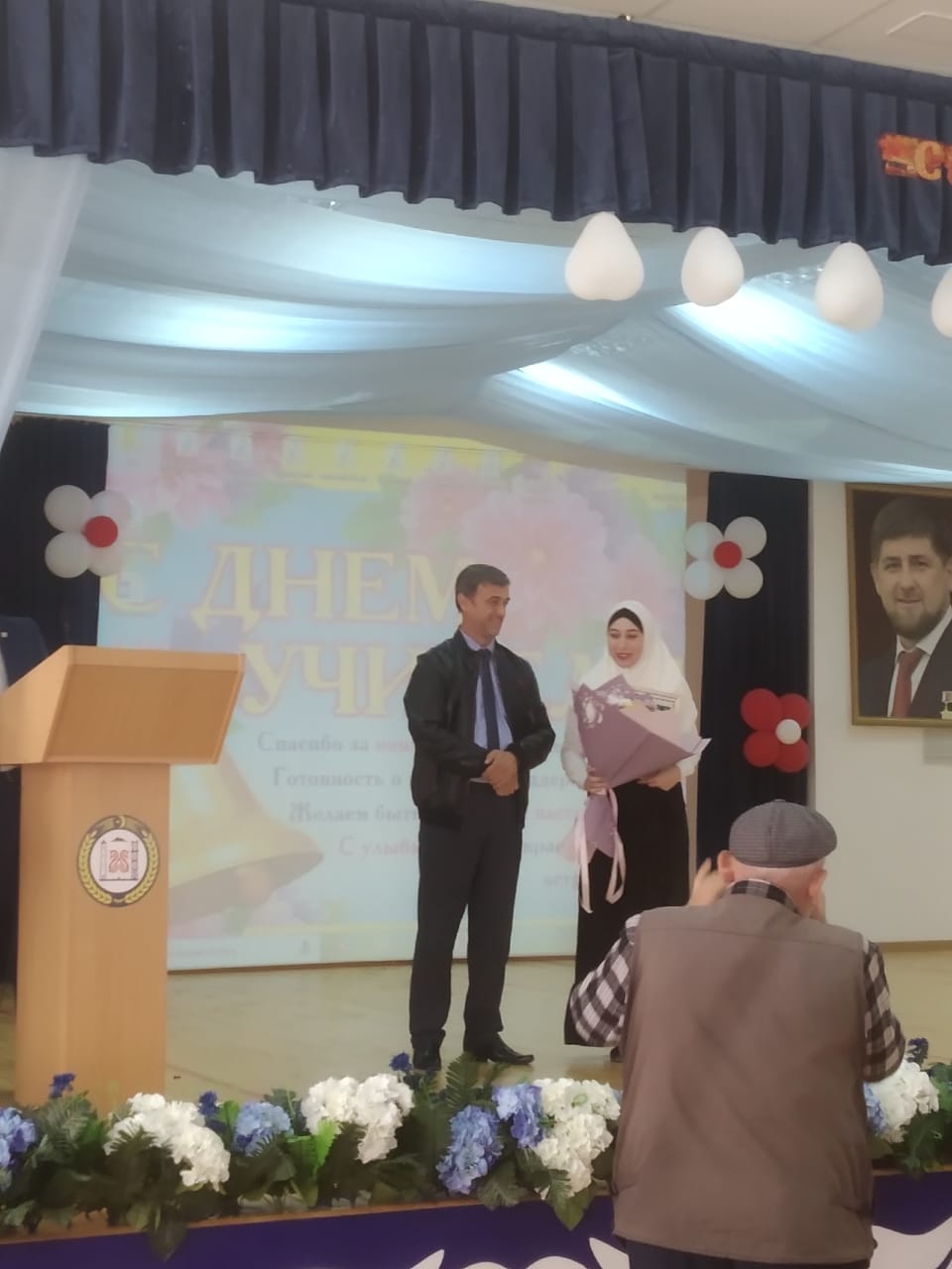 06.10.2019Награждается учитель английского языка МБОУ "СОШ - интернат №10 с. Новые Атаги" Юсупова Хава Майрбековна за высокие результаты в организации учебного и воспитательного процессов, значительный личный вклад в практическую подготовку учащихся.
