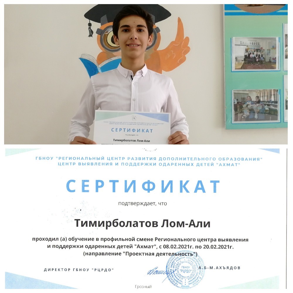 Тимирболатов Ломали проходил обучение в профильной смене Регионального центра выявления и поддержки одаренных детей "Ахмат", с 08.02.2021г. по 20.02.2021г.