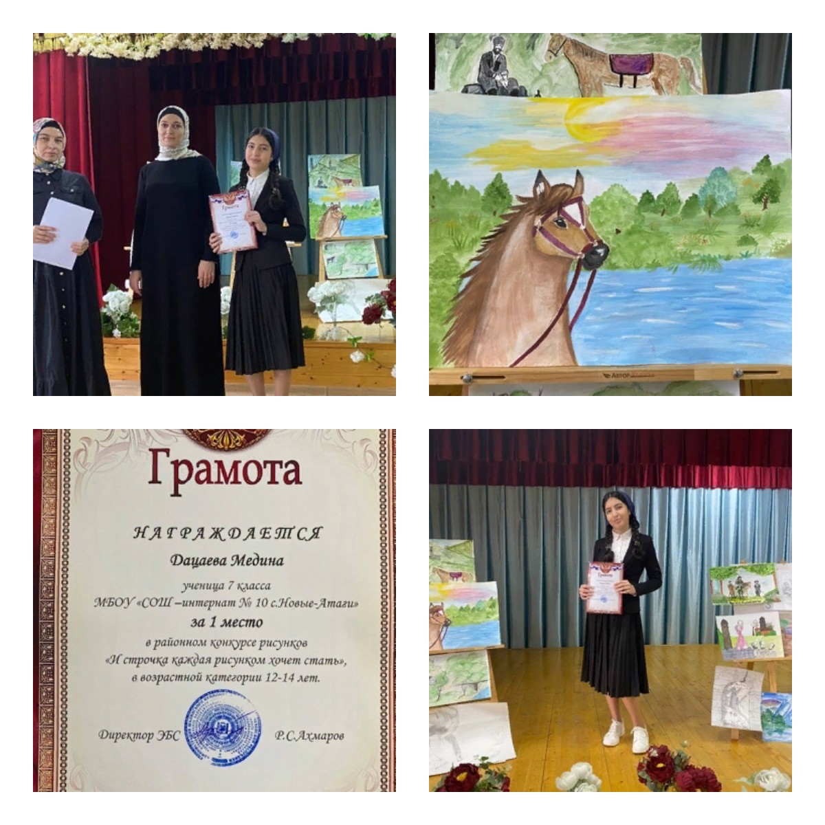 20.03.23г ученица 7 а класса МБОУ "СОШ-интернат №10 с.Новые Атаги" Дацаева Медина заняла 1 место в районном конкурсе рисунком хочет стать", приуроченный к году Чеченского языка.