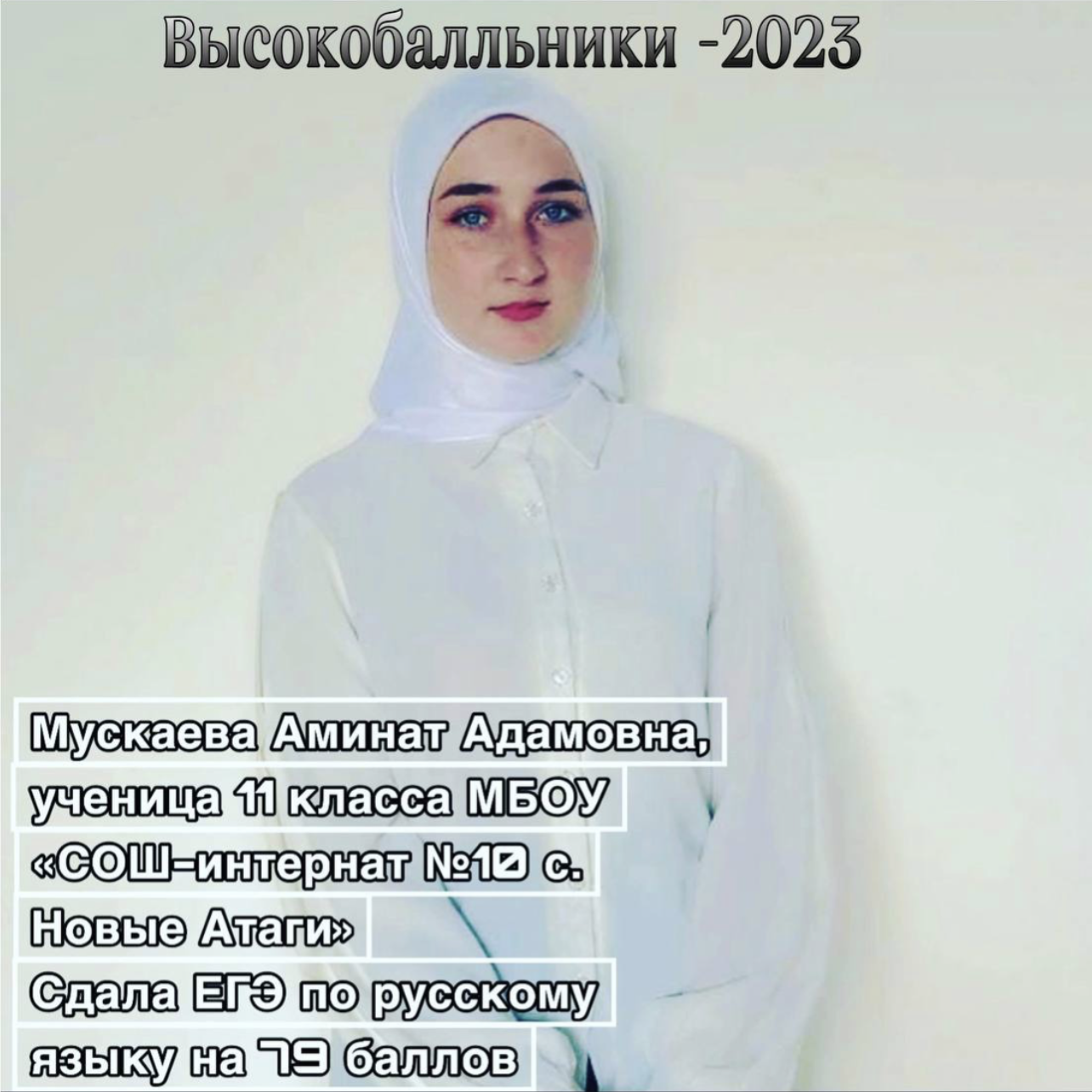 Мускаева Аминат Адамовна, ученица 11 класса МБОУ "СОШ-интернат №10 с. Новые Атаги" сдала ЕГЭ по русскому на 79 баллов.