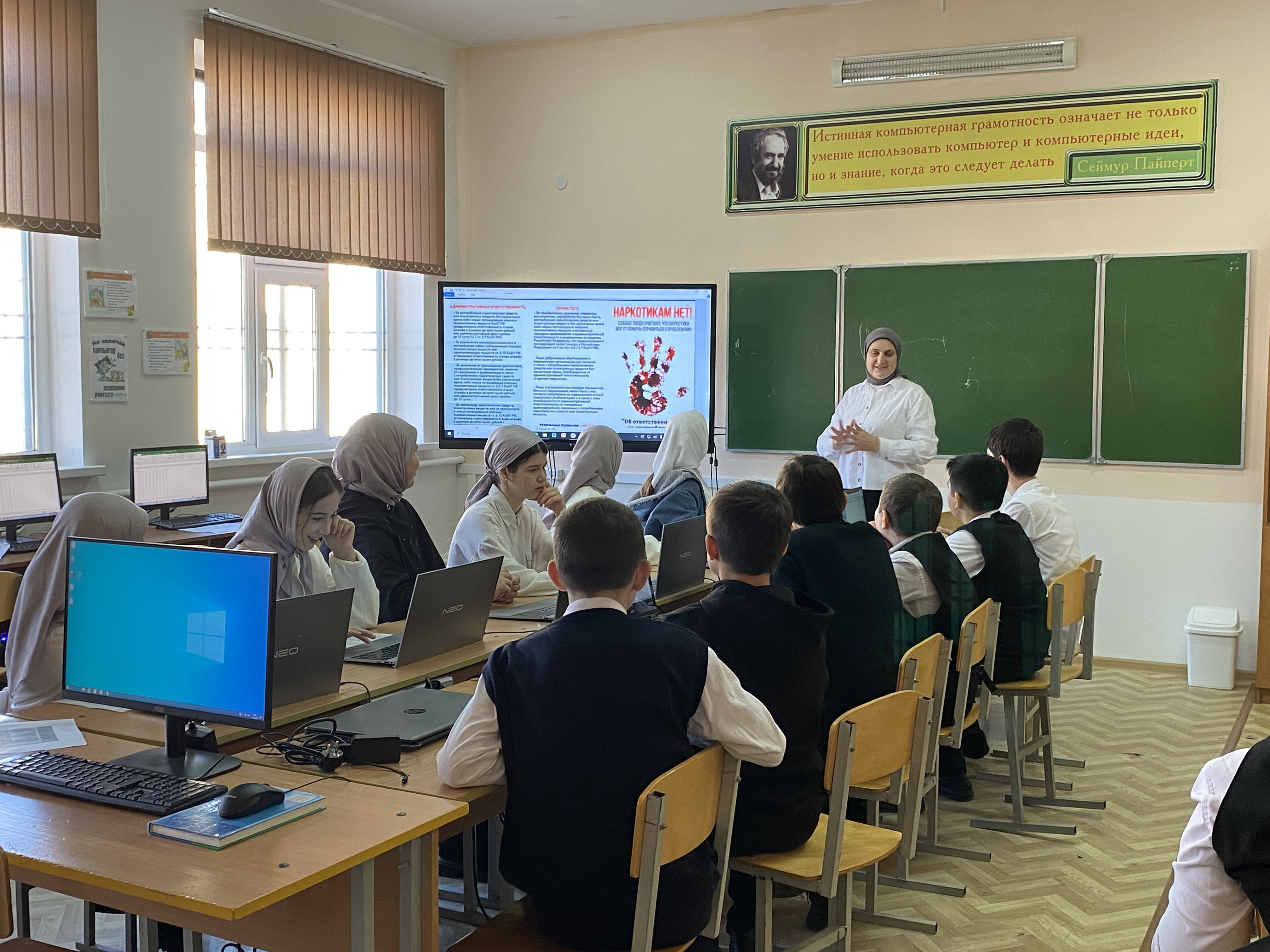 10.12.2024Отделом в Шалинском районе УФСБ России по Чеченской Республике совместно с МУ «Отдел образования Шалинского муниципального района Чеченской Республики» проведено профилактическое мероприятие в МБОУ "СОШ-интернат №10 с. Новые Атаги Шалинского муниципального района". на тему: «Ответственность за пропаганду, распространение, хранение и употребление наркотических средств и психотропных веществ среди несовершеннолетних».